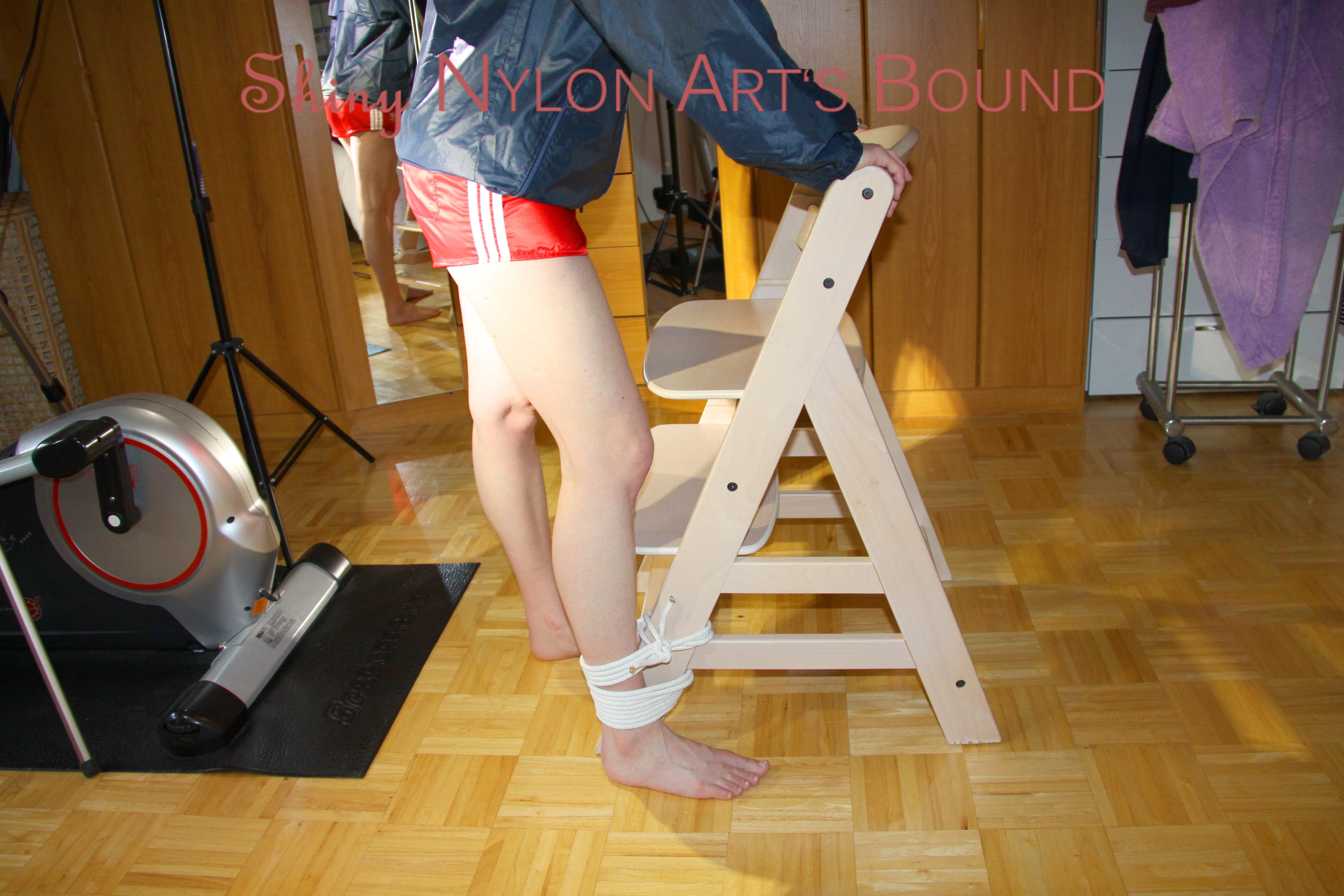 Jill tied and gagged taking a shower wearing sexy shiny nylon shorts and a rain jacket (Video)Jill tied, gagged and hooded in a shower where Sophie rubbing her with shaving foam and wahing her up both wearing shiny nylon rainwear and shorts (Video)