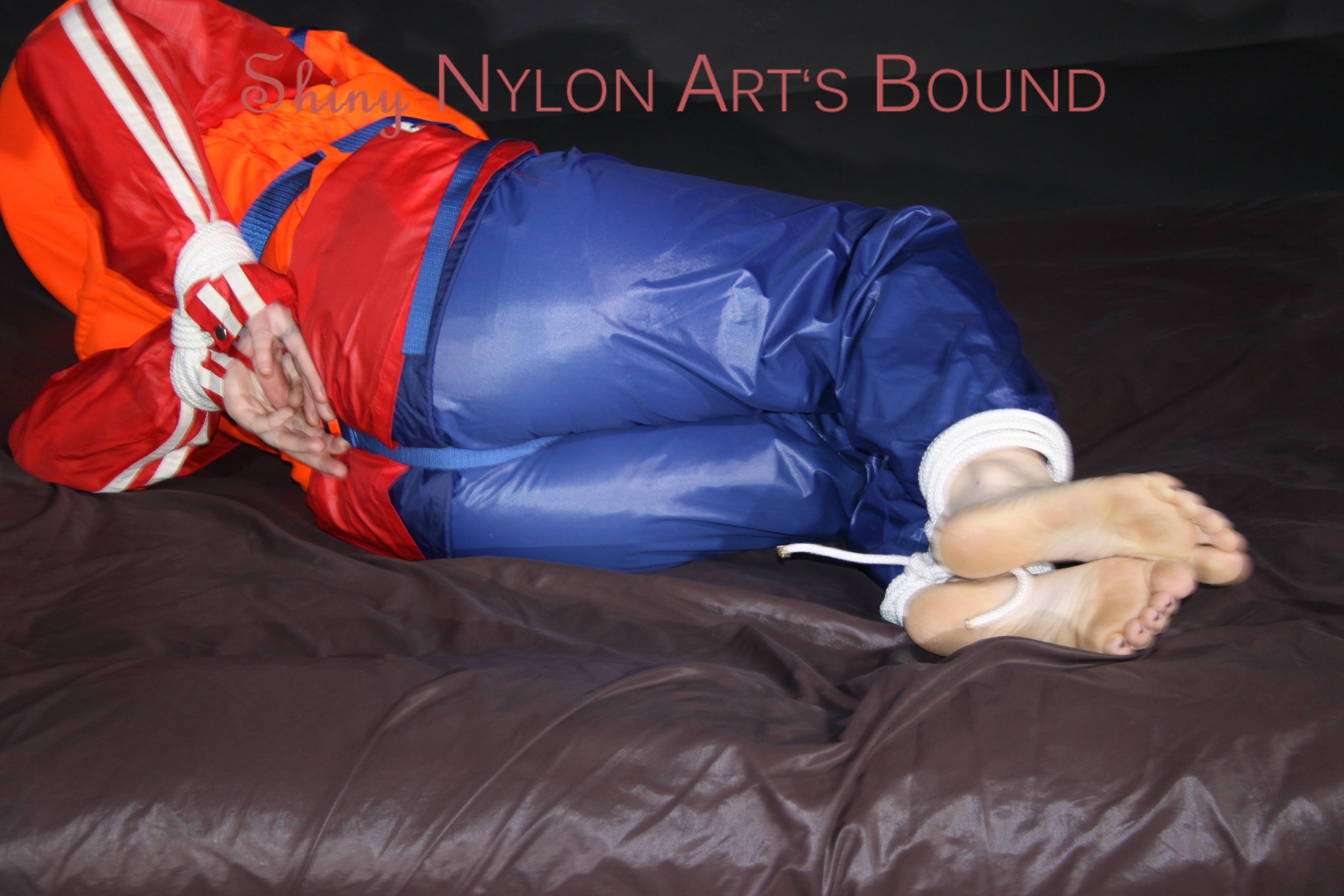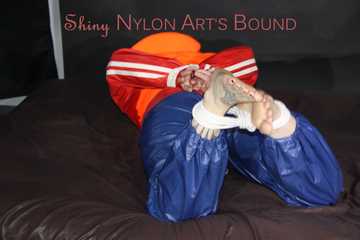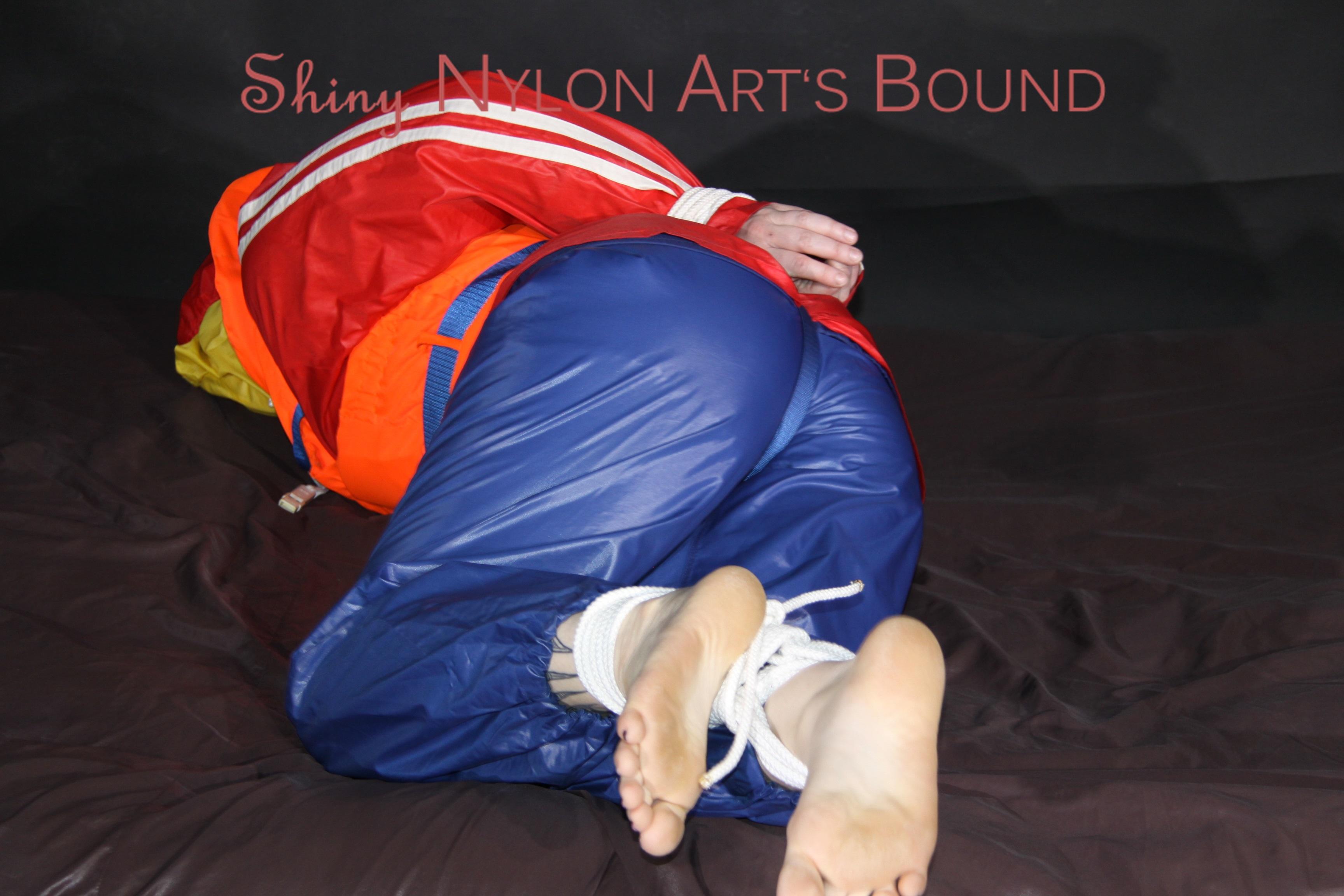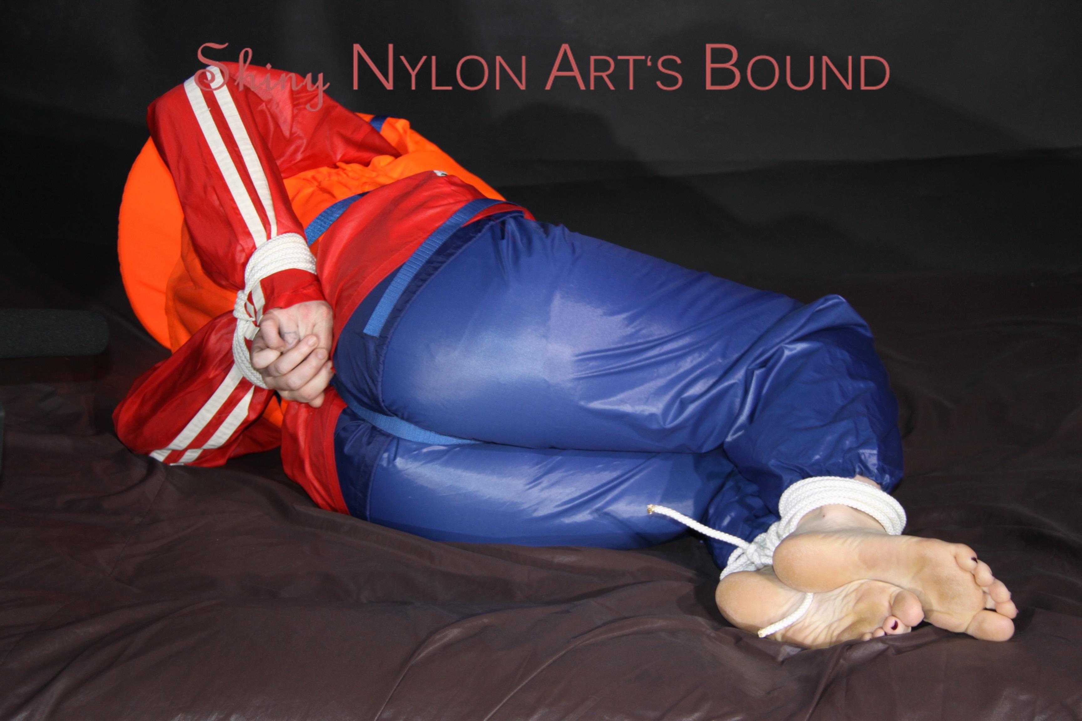 Watching Jill wearing a sexy shiny nylon rain pants and three shiny nylon rain jackets and a life jacket being tied and gagged and HOODED three times (Pics)