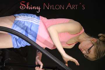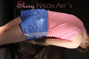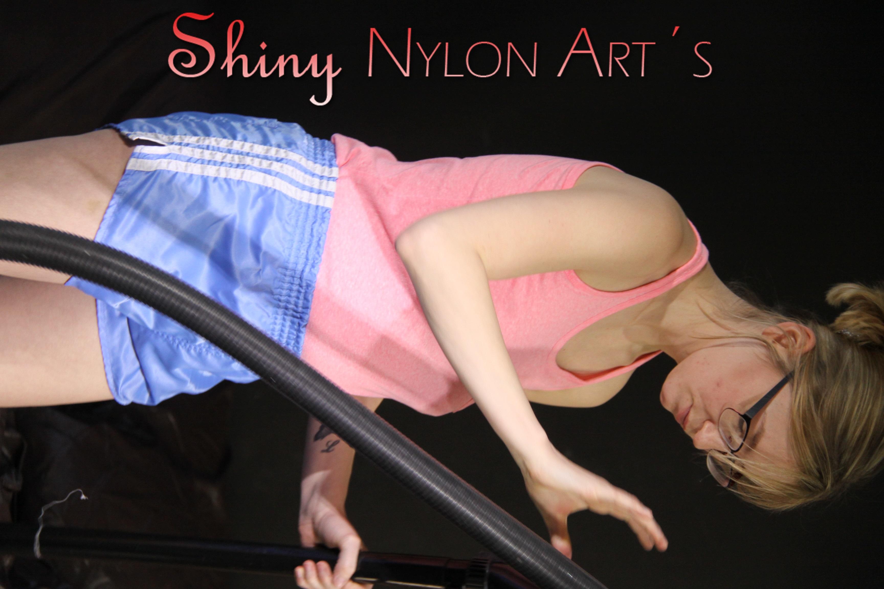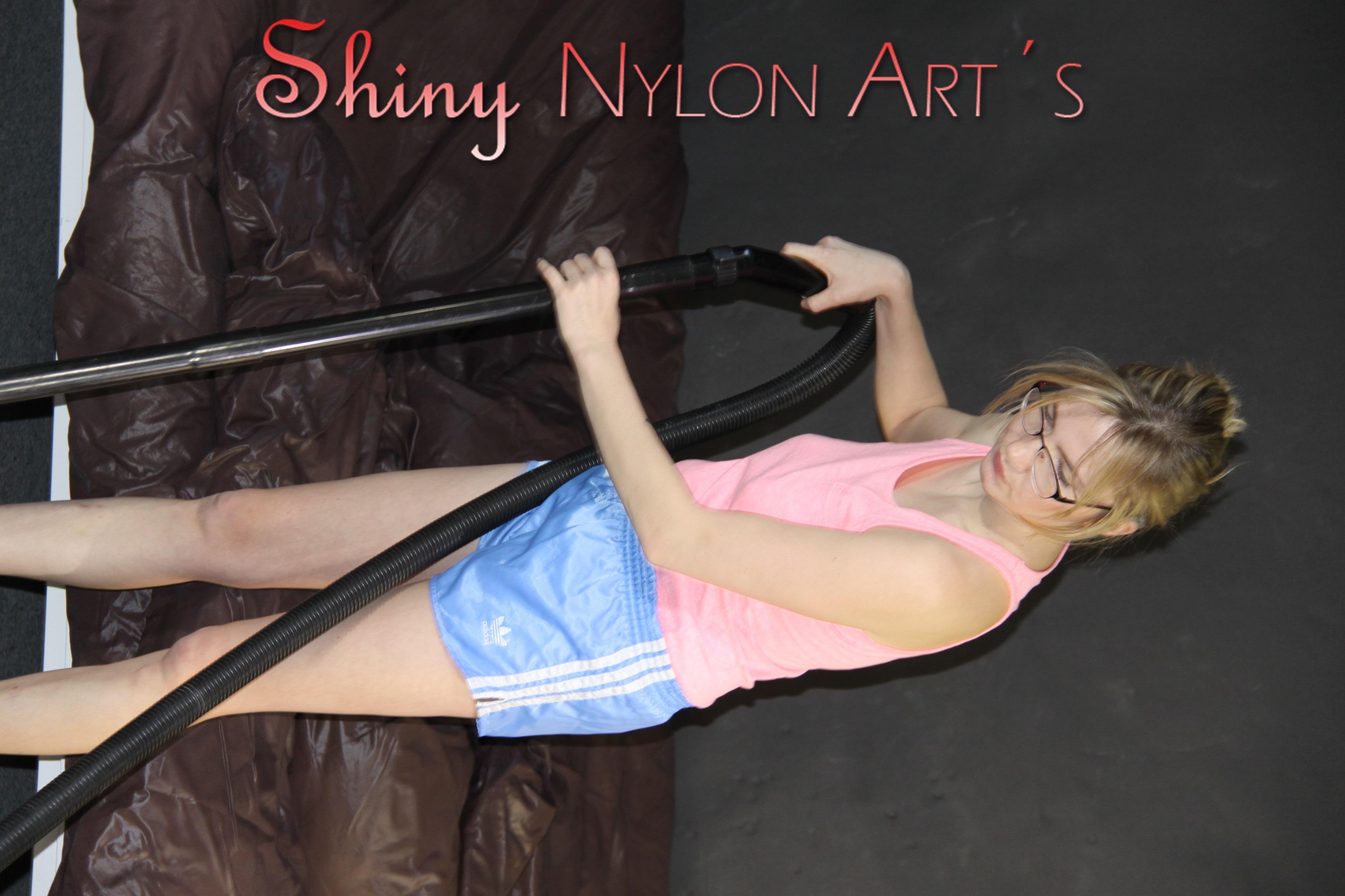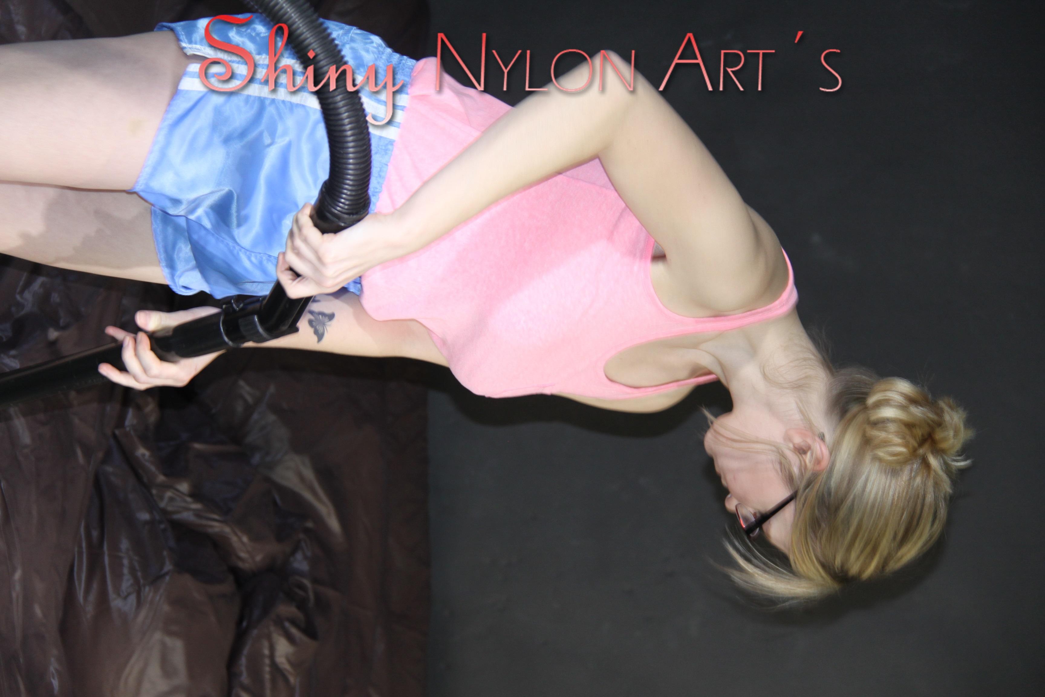 Watching ***MIA*** wearing a hot lightblue shiny nylon shorts and a pink top during vacuuming the studio (Pics)