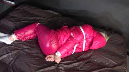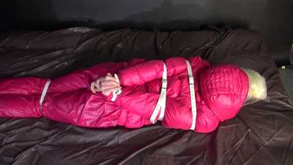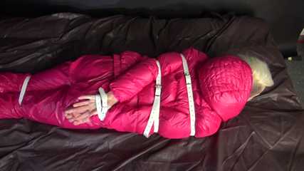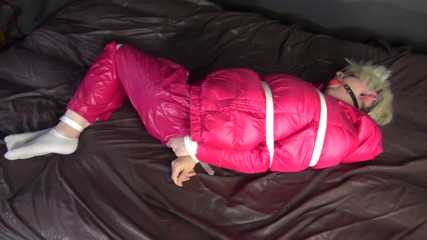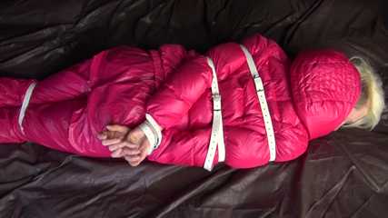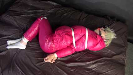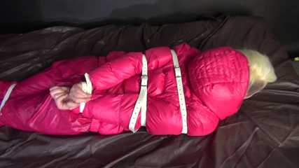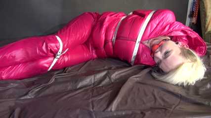 Watching sexy COURTNEY wearing pinj shiny nylon rainwear being tied and gagged with ropes (Video)
