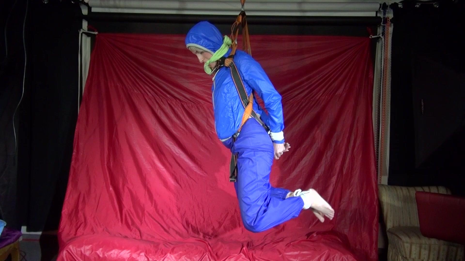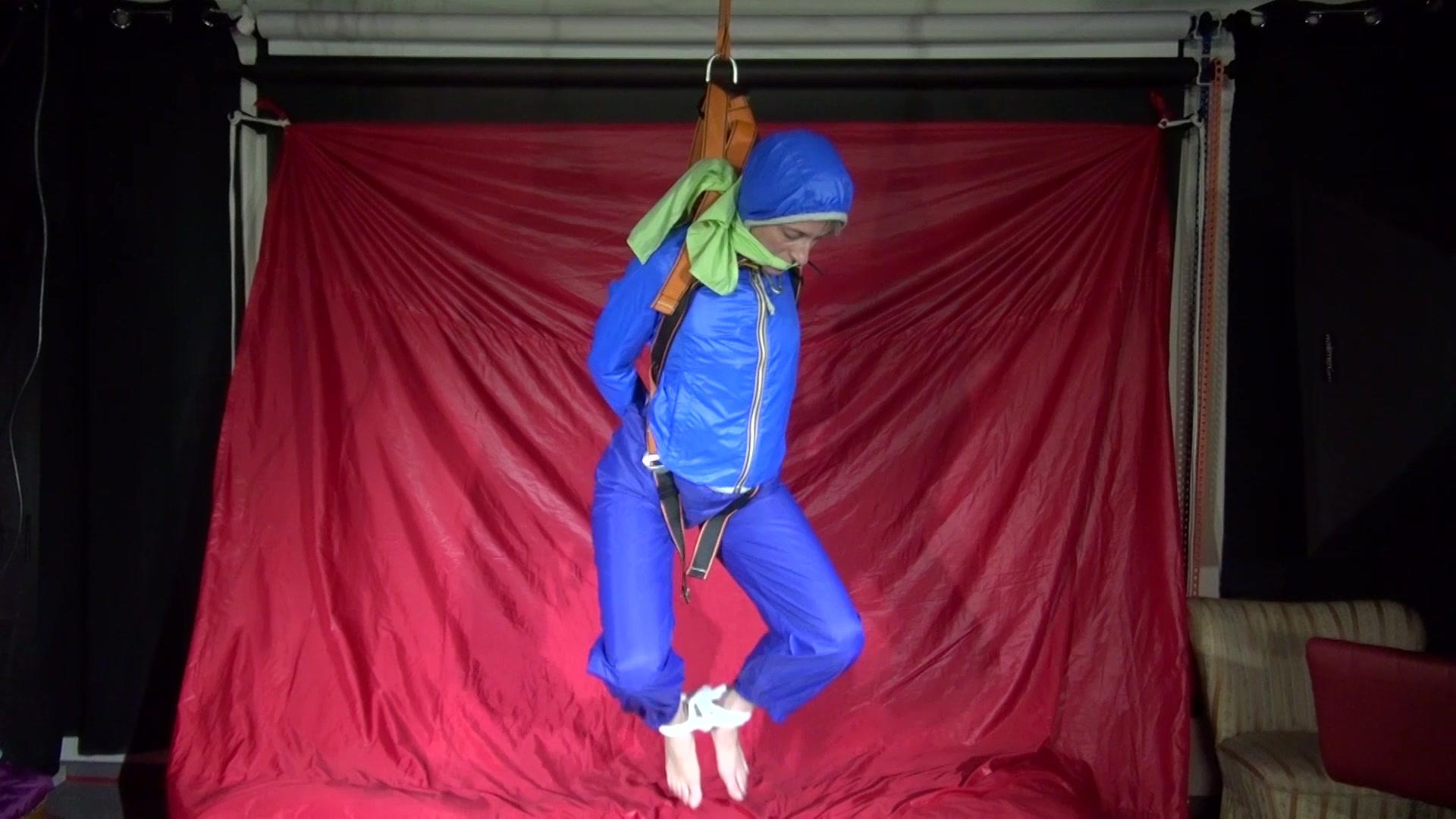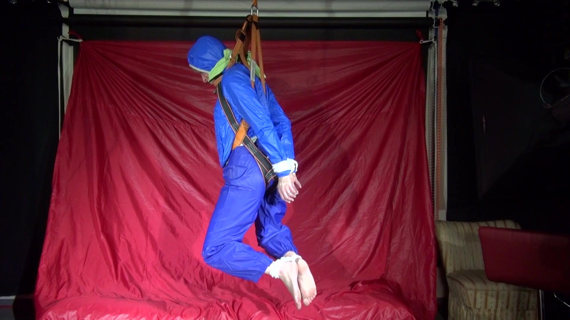 Watching sexy Sonja being tied and gagged overhead hanging with a special belt and ropes and a cloth gag (Video)