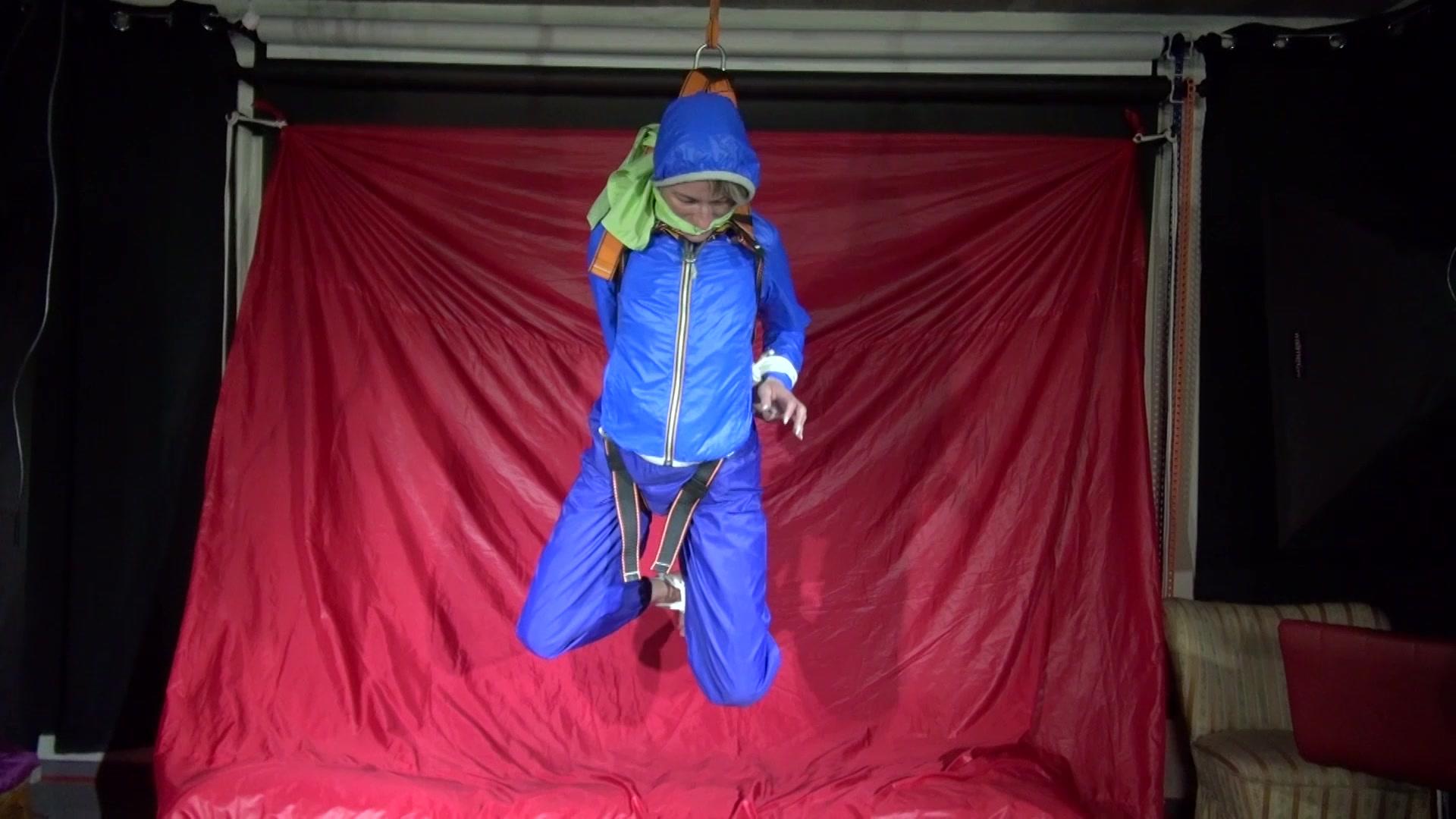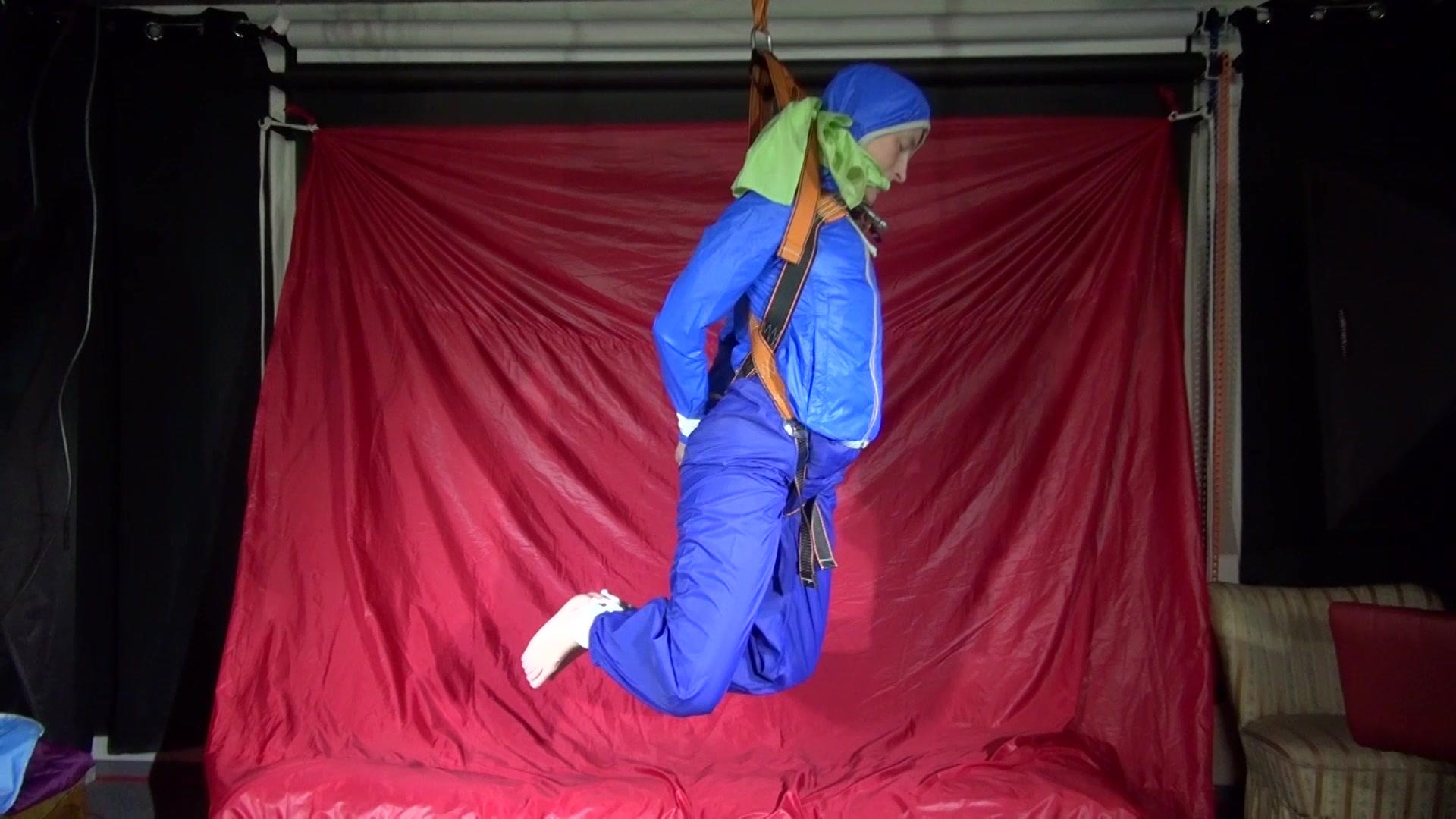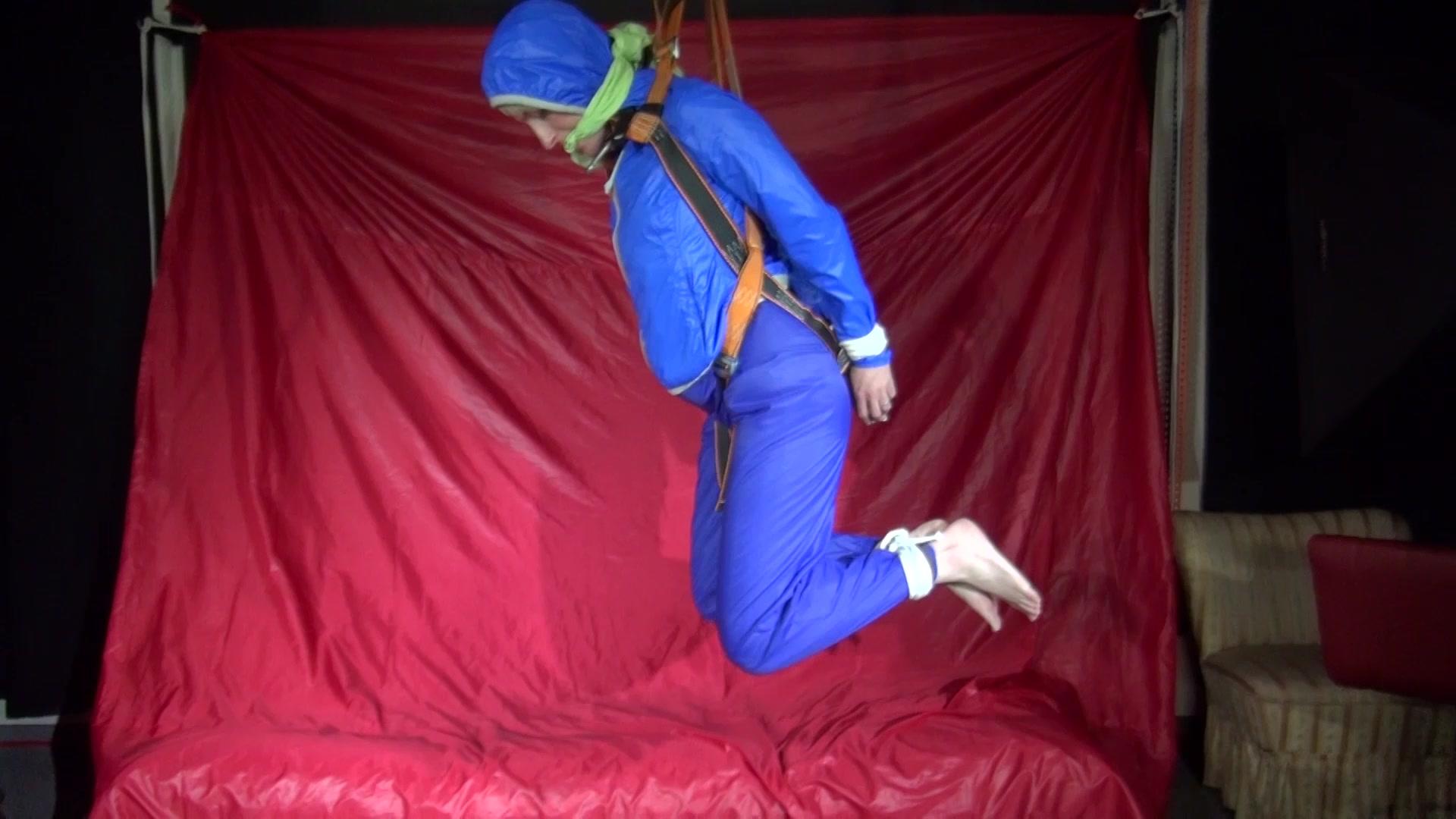 Watching sexy Sonja being tied and gagged overhead hanging with a special belt and ropes and a cloth gag (Video)